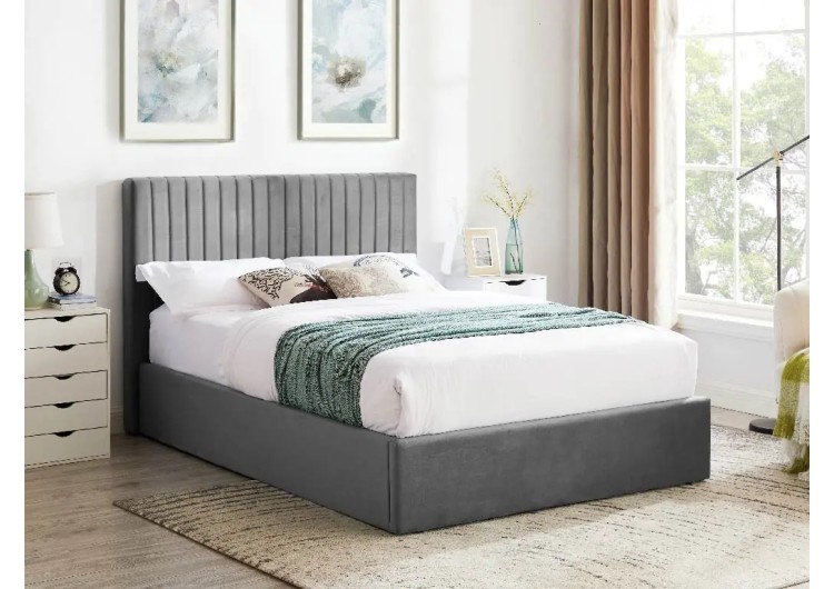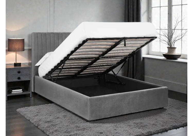 The Milan end lift ottoman bed is finished in a charcoal plush grey fabric. The base is all steel and super strong, having been tested to hold 300kg (47 stone), with beech sprung slats for greater comfort, support and durability. The Milan Ottoman is on display in our showroom for viewing and testing prior to purchase. The price shown excludes a mattress.